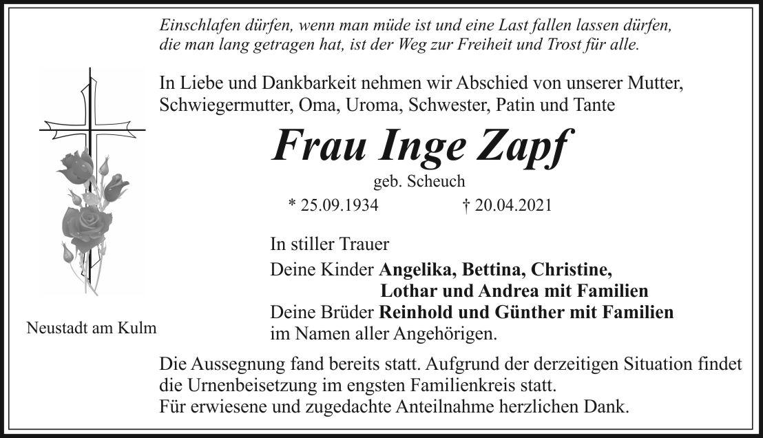 Die Aussegnung fand bereits statt. Aufgrund der derzeitigen Situation findet