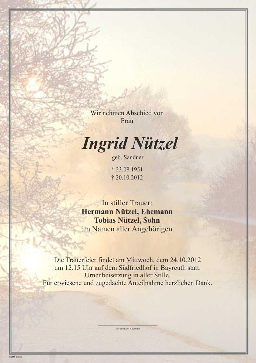 friedhof in Bayreuth statt. Urnenbeisetzung in aller Stille. Für erwiesene