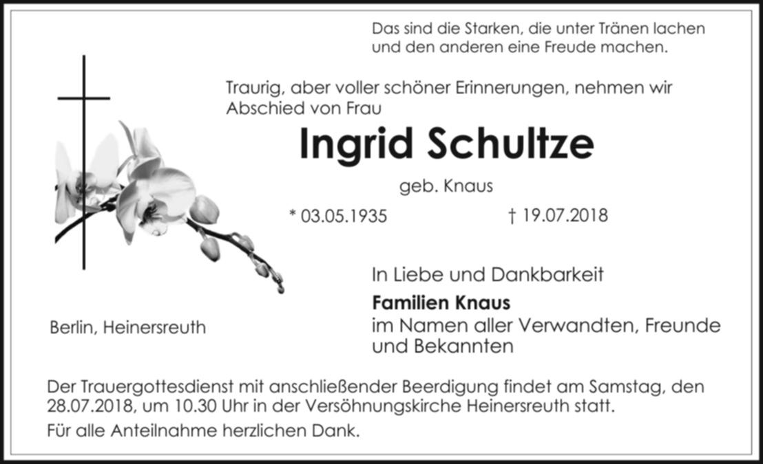 Der Trauergottesdienst mit anschließender Beerdigung findet am Samstag, den 28.07.2018, um 10.30 Uhr in der Versöhnungskirche Heinersreuth statt.