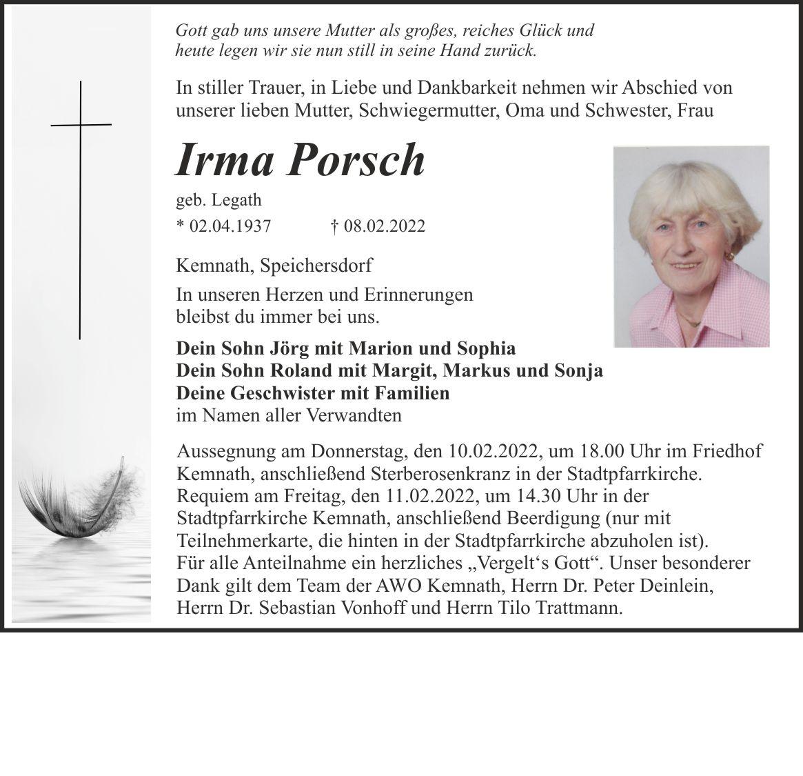 Requiem am Freitag, den 11.02.2022, um 14.30 Uhr in der Stadtpfarrkirche Kemnath, anschließend Beerdigung (nur mit Teilnehmerkarte, die hinten in der Stadtpfarrkirche abzuholen ist).