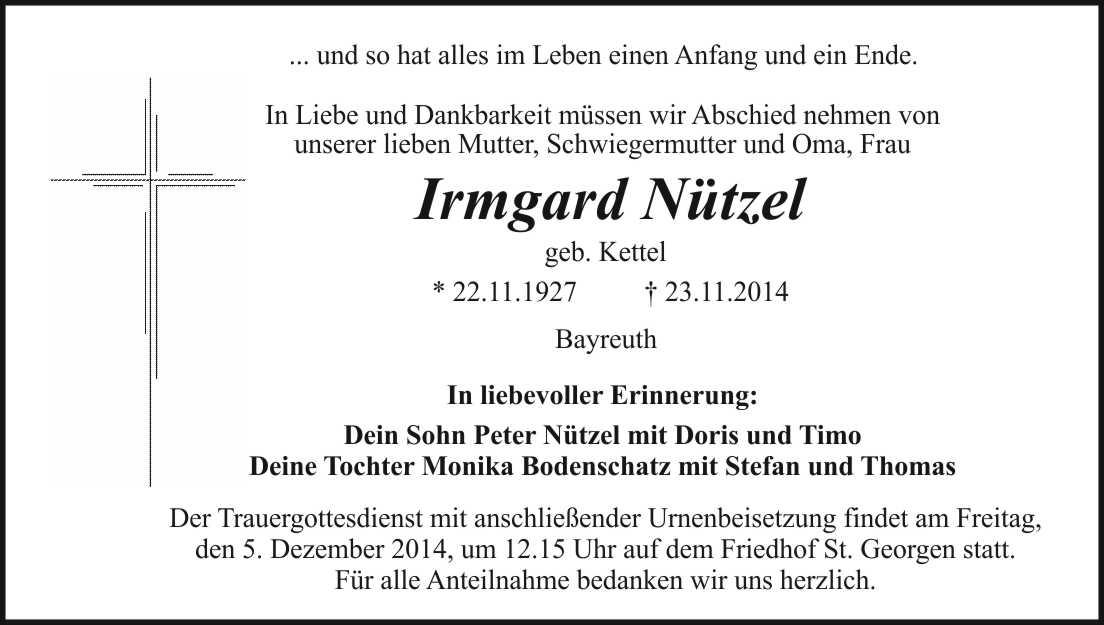 den 5. Dezember 2014, um 12.15 Uhr auf dem Friedhof St. Georgen statt.
