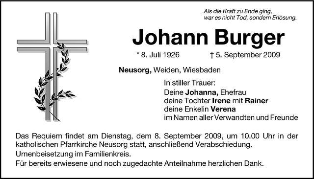 Die Verabschiedung findet am Dienstag dem 8.9.2009 um 10.00 Uhr in der katholischen Pfarrkirche in Neusorg statt.