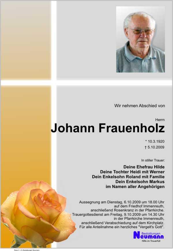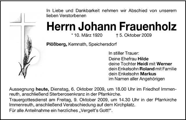 Der Trauergottesdienst findet am Freitag, 9.10.2009 um 14.30 Uhr in der Pfarrkirche Immenreuth statt, anschließend Verabschiedung auf dem Kirchplatz.