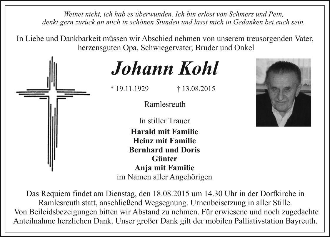 Von Beileidsbezeigungen bitten wir Abstand zu nehmen. Für erwiesene und noch zugedachte Anteilnahme herzlichen Dank. Unser großer Dank gilt der mobilen Palliativstation Bayreuth.
