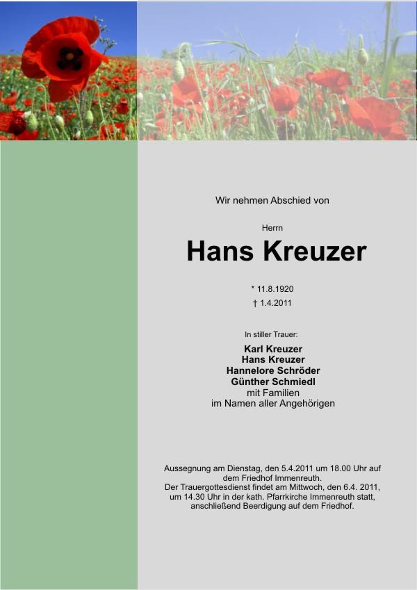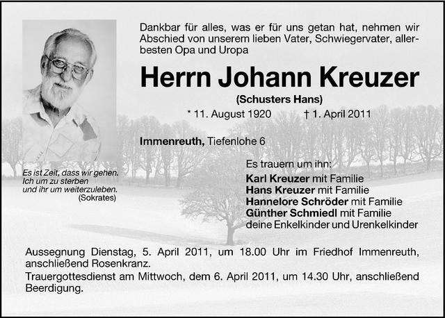 Die Beisetzung findet am Mittwoch, 06.04.2011 um 14:30 Uhr auf dem Friedhof in Immenreuth statt.