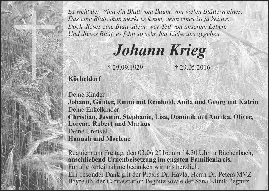 Requiem am Freitag, den 03.06.2016, um 14.30 Uhr in Büchenbach, anschließend Urnenbeisetzung im engsten Familienkreis. Für alle Anteilnahme bedanken wir uns herzlich.