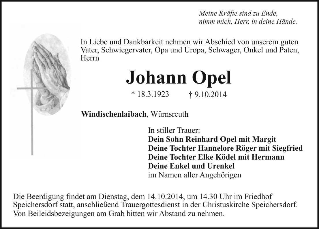 Die Beerdigung findet am Dienstag, dem 14.10.2014, um 14.30 Uhr im Friedhof Speichersdorf statt, anschließend Trauergottesdienst in der Christuskirche Speichersdorf.