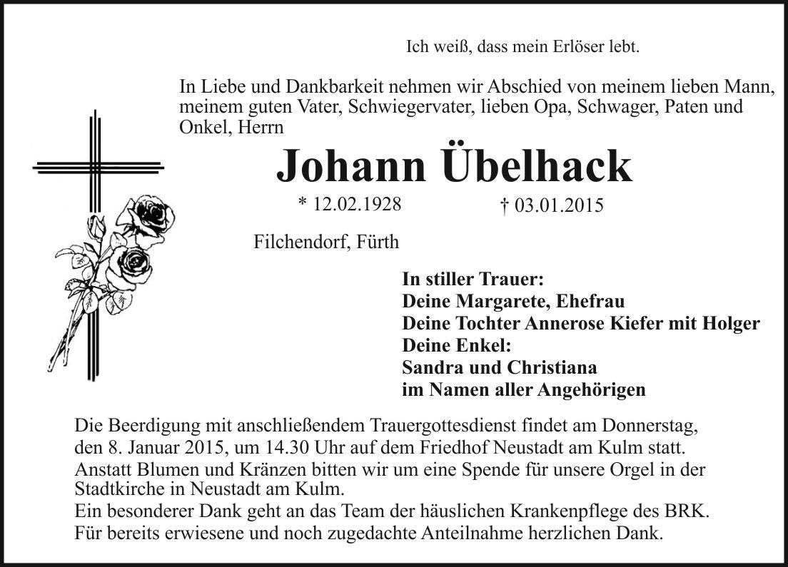 den 8. Januar 2015, um 14.30 Uhr auf dem Friedhof Neustadt am Kulm statt.