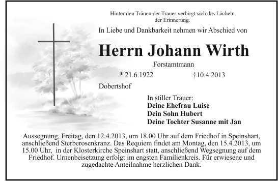 art, anschließend Sterberosenkranz. Das Requiem findet am Montag, den 15.4.