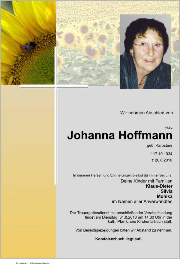 Der Trauergottesdienst mit anschließender Verabschiedung findet am Dienstag, 31.8.2010 um 14.30 Uhr in der kath. Pfarrkirche Kirchenlaibach statt.