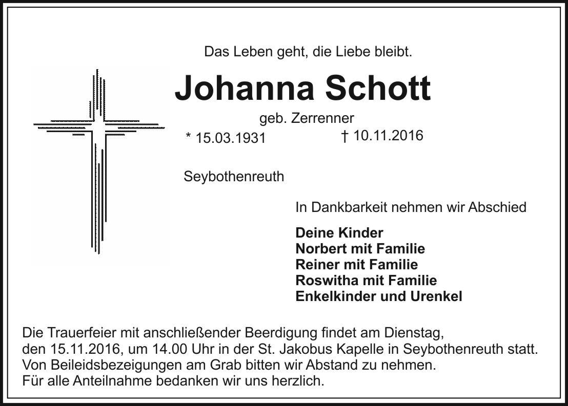 den 15.11.2016, um 14.00 Uhr in der St. Jakobus Kapelle in Seybothenreuth statt. Von Beileidsbezeigungen am Grab bitten wir Abstand zu nehmen.