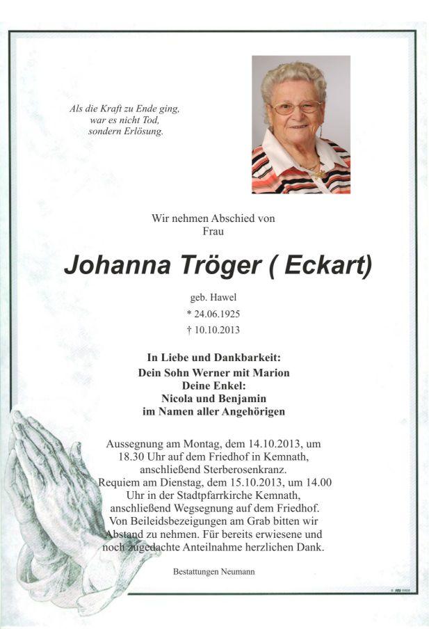 Aussegnung am Montag, dem 14.10.2013, um 18.30 Uhr auf dem Friedhof in Kemnath, anschließend Sterberosenkranz. Requiem am Dienstag, dem 15.10.2013, um 14.00 Uhr in der Stadtpfarrkirche Kemnath, anschließend Wegsegnung auf dem Friedhof. Von Beileidsbezeigungen bitten wir Abstand zu nehmen. Für erwiesene und zugedachte Anteilnahme herzlichen Dank.