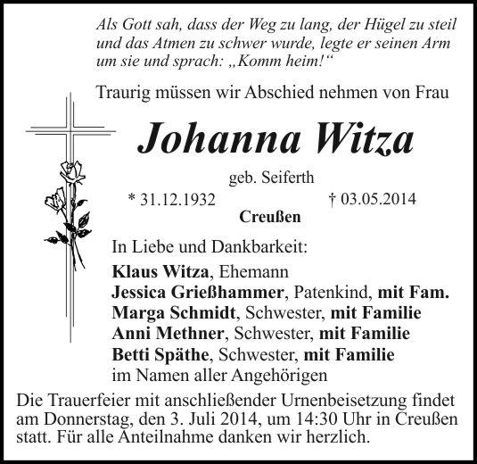 Die Trauerfeier mit anschließender Urnenbeisetzung findet am Donnerstag, den 3. Juli 2014, um 14:30 Uhr in Creußen statt. Für alle Anteilnahme danken wir herzlich.