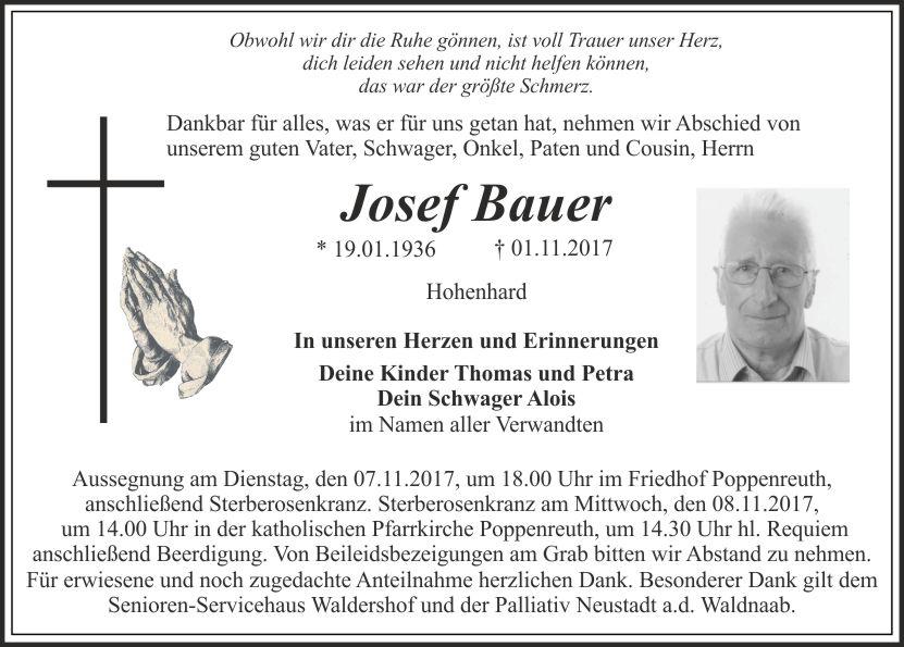 um 14.00 Uhr in der katholischen Pfarrkirche Poppenreuth, um 14.30 Uhr hl. Requiem anschließend Beerdigung. Von Beileidsbezeigungen am Grab bitten wir Abstand zu nehmen. Für erwiesene und noch zugedachte Anteilnahme herzlichen Dank. Besonderer Dank gilt dem Senioren-Servicehaus Waldershof und der Palliativ Neustadt a.d. Waldnaab.