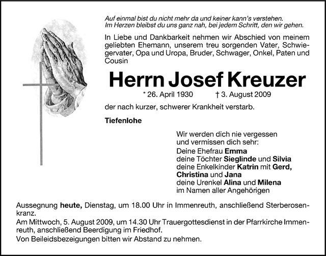 Die Beisetzung findet am Mittwoch, 05.08.2009 um 14:30 Uhr auf dem Friedhof in Immenreuth statt.