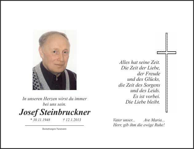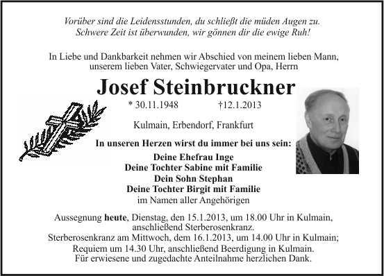 Aussegnung heute, Dienstag, den 15.1.2013, um 18.00 Uhr in Kulmain,
