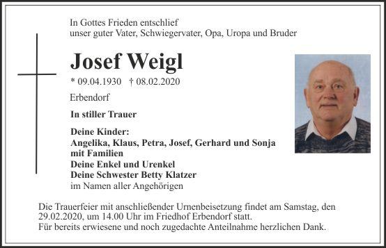 Die Trauerfeier mit anschließender Urnenbeisetzung findet am Samstag, den 29.02.2020, um 14.00 Uhr im Friedhof Erbendorf statt.