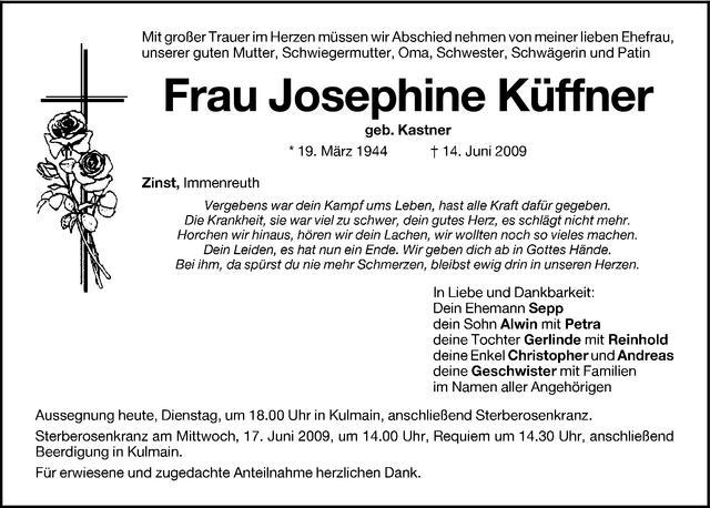 Die Beisetzung findet am Mittwoch, 17.06.2009 um 14:30 Uhr auf dem Friedhof in Kulmain statt.