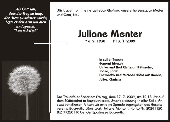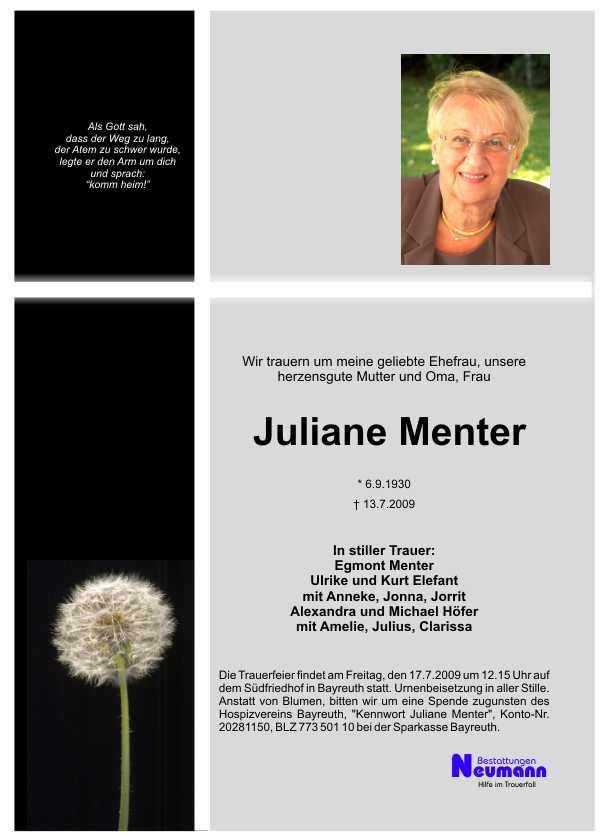 Die Trauerfeier findet am Freitag, dem 17.7.2009 um 11.30 Uhr im Südfriedhof in Bayreuth statt.