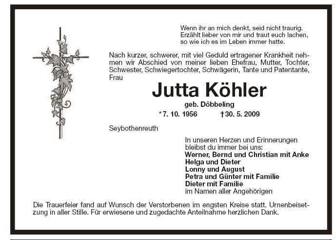 Die Trauerfeier findet am Donnerstag den 4.6.2009 um 10:00 Uhr im Südfriedhof in Bayreuth statt.