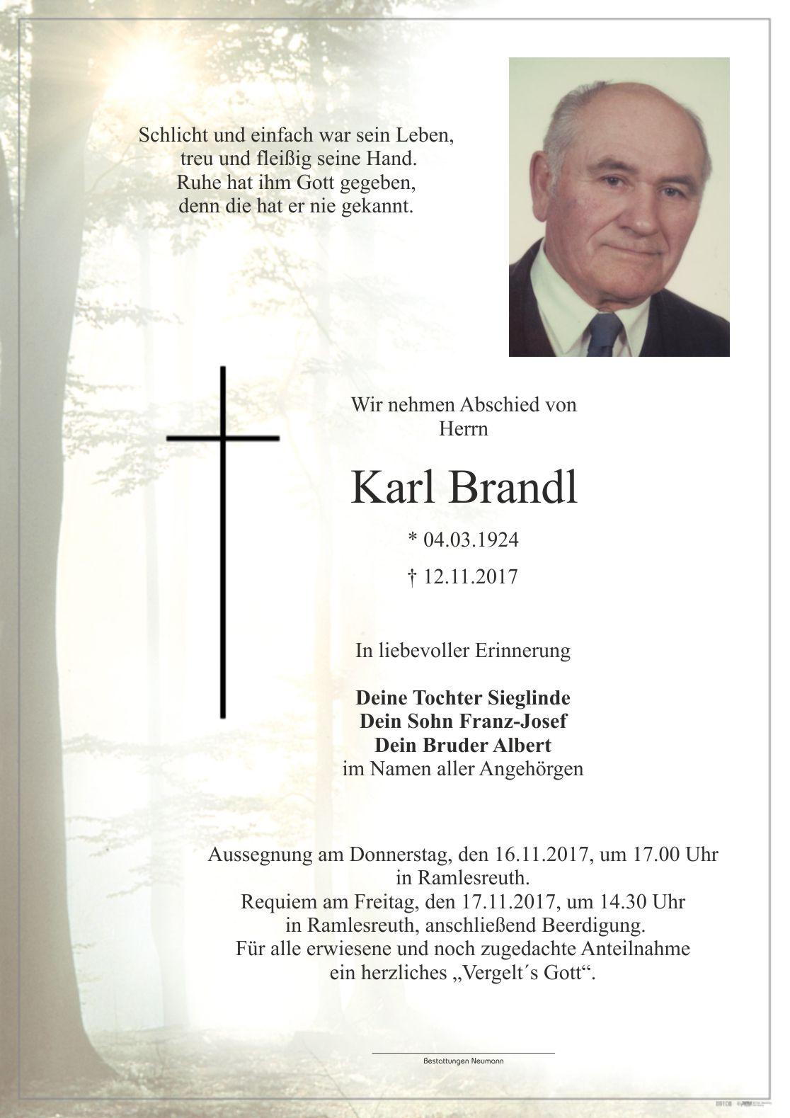 Aussegnung am Donnerstag, den 16.11.2017, um 17.00 Uhr in Ramlesreuth.