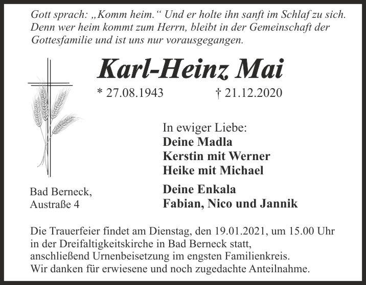 Die Trauerfeier findet am Dienstag, den 19.01.2021, um 15.00 Uhr
