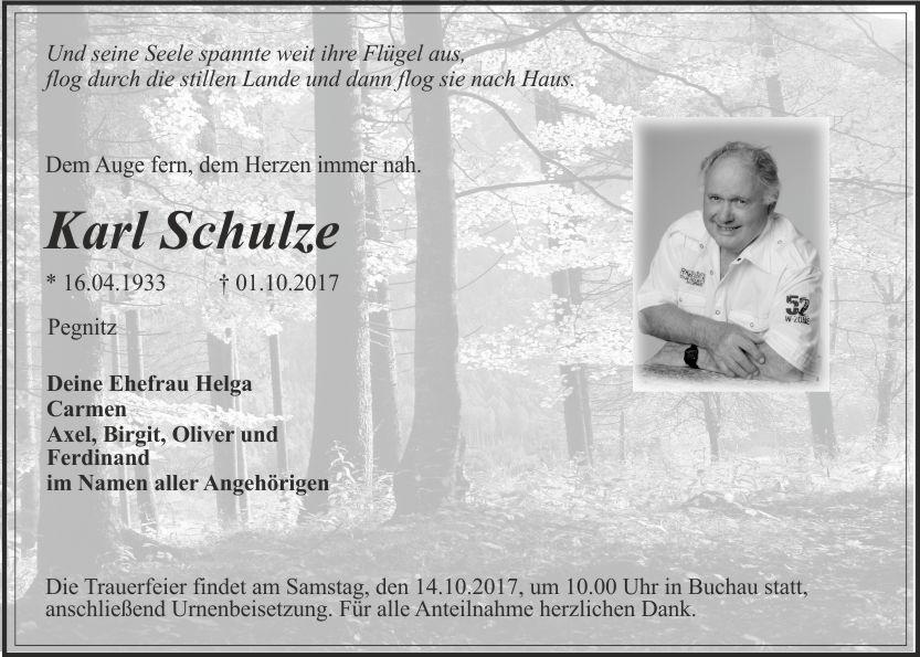 Die Trauerfeier findet am Samstag, den 14.10.2017, um 10.00 Uhr in Buchau statt, anschließend Urnenbeisetzung. Für alle Anteilnahme herzlichen Dank.