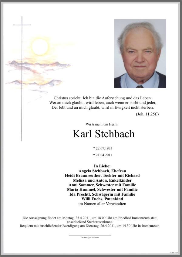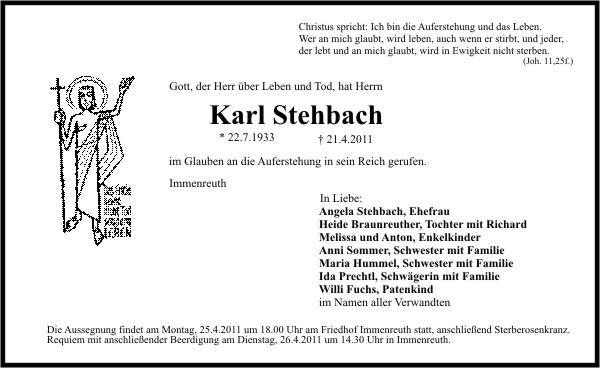 Die Beisetzung findet am Dienstag, 26.04.2011 um 14:30 Uhr auf dem Friedhof in Immenreuth statt.
