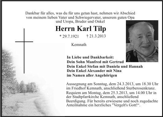 Requiem am Montag, dem 25.3.2013, um 14.00 Uhr in der Stadtpfarrkirche Kemnath, anschließend Beerdigung. Für bereits erwiesene und noch zugedachte Anteilnahme ein herzliches "Vergelt's Gott!“.