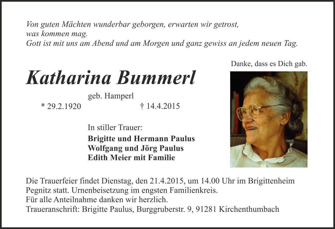 Traueranschrift: Brigitte Paulus, Burggruberstr. 9, 91281 Kirchenthumbach