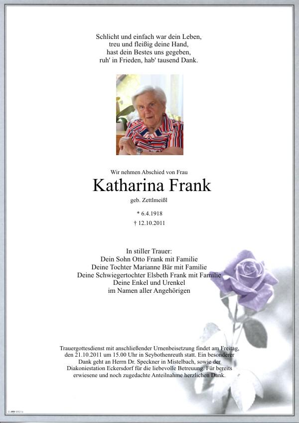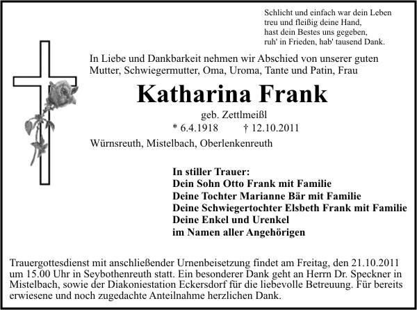 Die Trauerfeier findet am Freitag den 20.10.2011 um 15.00 Uhr auf dem Friedhof in Seybothenreuth statt, anschließend Urnenbeisetzung.