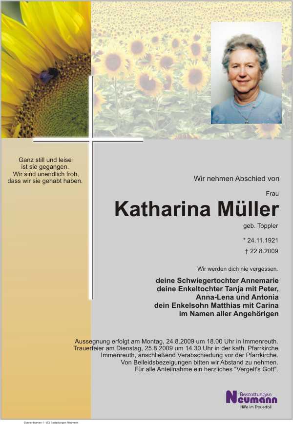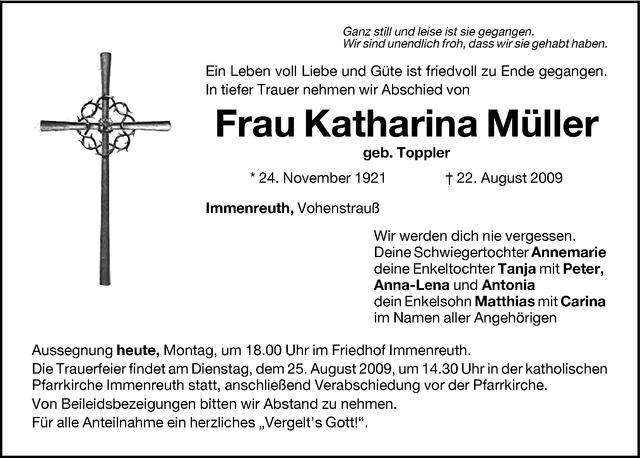 Die Beisetzung findet am Samstag, 19.09.2009 um 10:00 Uhr auf dem Friedhof in Immenreuth statt.