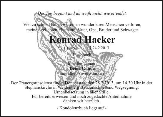 Der Trauergottesdienst findet Donnerstag, den 28.2.2013, um 14.30 Uhr in der