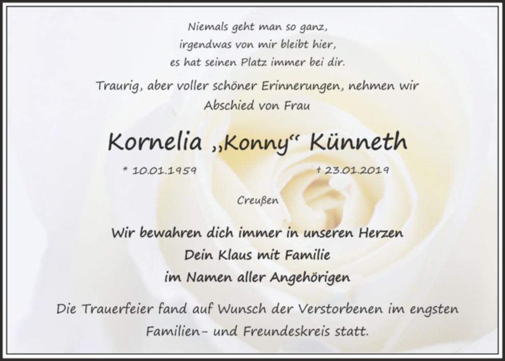 Die Trauerfeier fand auf Wunsch der Verstorbenen im engsten Familien- und Freundeskreis statt.