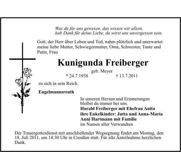 Die Beisetzung findet auf dem Friedhof in Friedhof in Creußen statt.