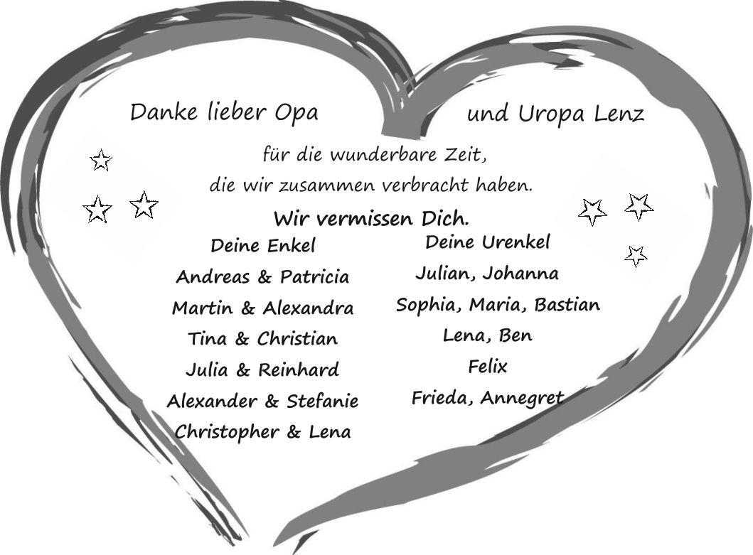 Für bereits erwiesene und noch zugedachte Anteilnahme bedanken wir uns.