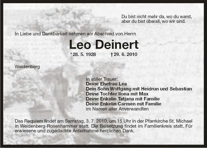 Das Requiem findet am Samstag, 3.7.2010 um 15.00 Uhr in der kat. Pfarrkirche St. Michael in Weidenberg-Rosenhammer statt. Die Beisetzung findet im Familienkreis statt.