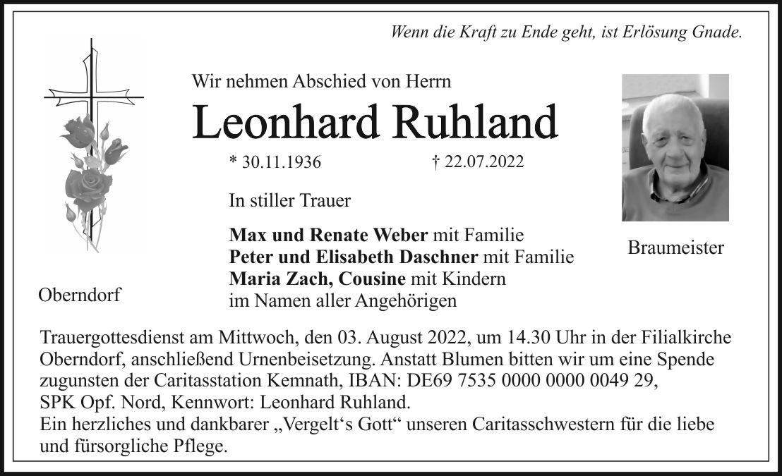 SPK Opf. Nord, Kennwort: Leonhard Ruhland.