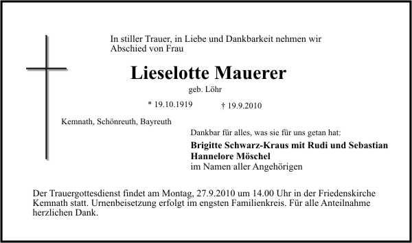 Die Beisetzung findet auf dem Friedhof in Friedhof in Kemnath statt.
