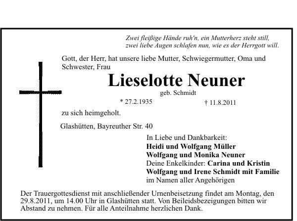 Die Beisetzung findet am Montag, 29.08.2011 um 14:00 Uhr auf dem Friedhof in Glashütten statt.