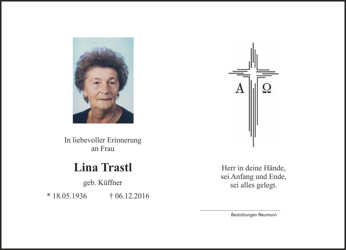 Sterberosenkranz am Donnerstag, den 08.12.2016, um 18.00 Uhr in der katholischen Pfarrkirche Neusorg. Das Requiem findet am Freitag, den 09.12.2016 um 14.30 Uhr in der katholischen Pfarrkirche Neusorg statt, anschließend Wegsegnung am Kirchplatz. Urnenbeisetzung im engsten Familienkreis.
