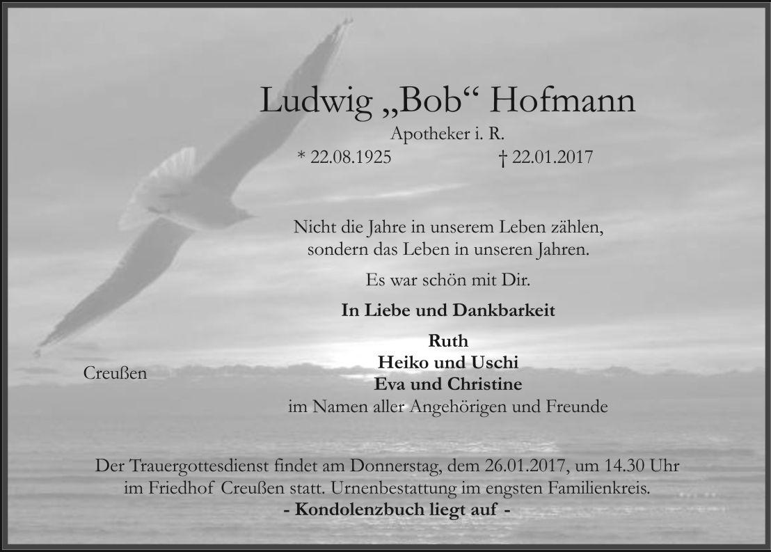 Der Trauergottesdienst findet am Donnerstag, dem 26.01.2017, um 14.30 Uhr