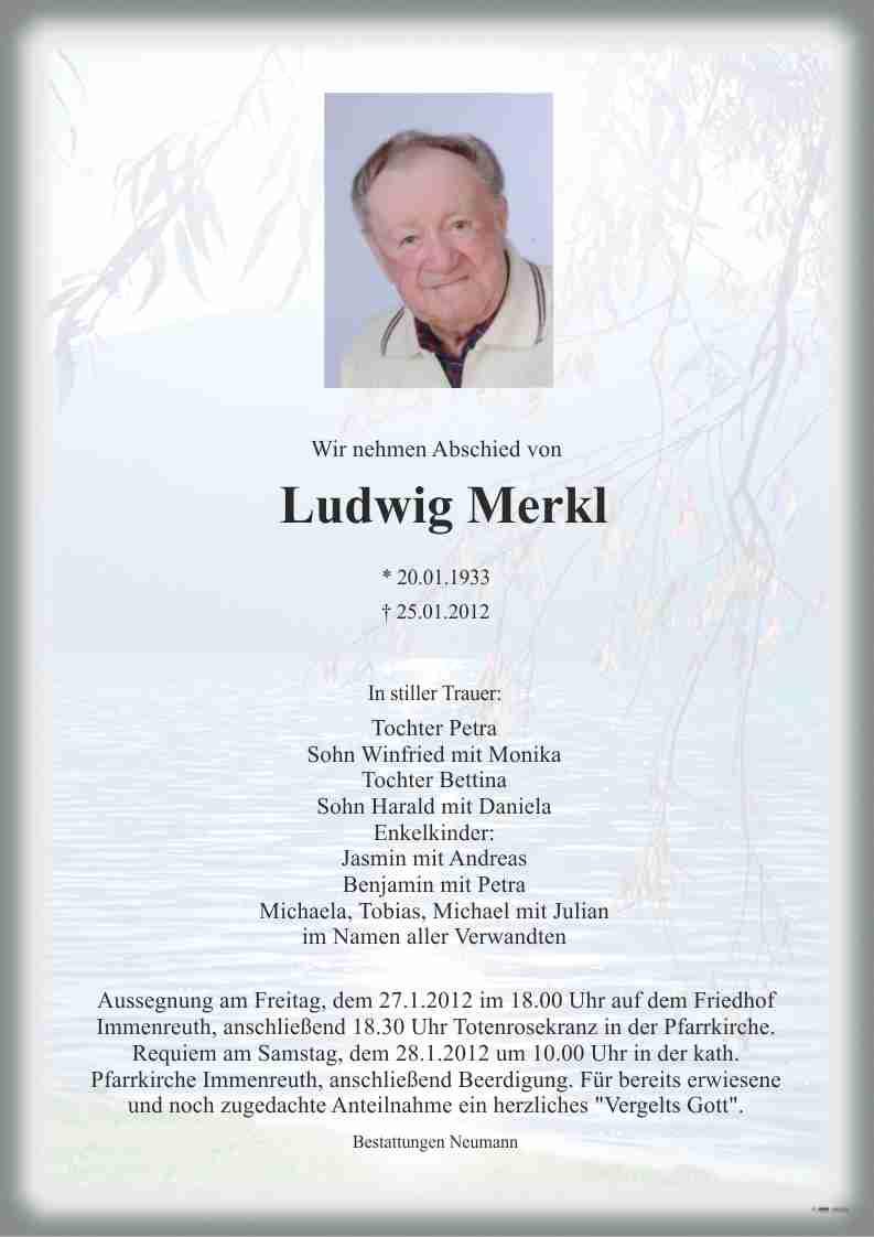 Aussegnung am Freitag, dem 27.1.2012 um 18.00 Uhr auf dem Friedhof Immenreuth, anschließend Totenrosenkranz um 18.30 Uhr in der Pfarrkirche. Requiem am Samstag, dem 28.1.2012 um 10.00 Uhr in der kath. Pfarrkirche Immenreuth, anschließend Beerdigung. Für bereits erwiesene und noch zugedachte Anteilnahme ein herzliches "Vergelt's Gott".