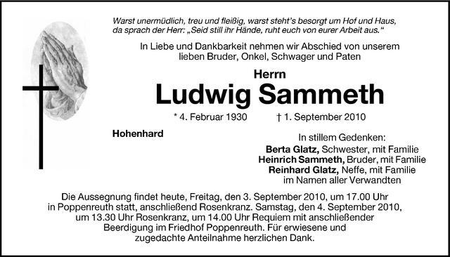 Der Gottesdienst mit anschließender Beerdigung findet am Samstag, den 4.9.2010 um 14.00 Uhr auf dem Friedhof in Poppenreuth statt.