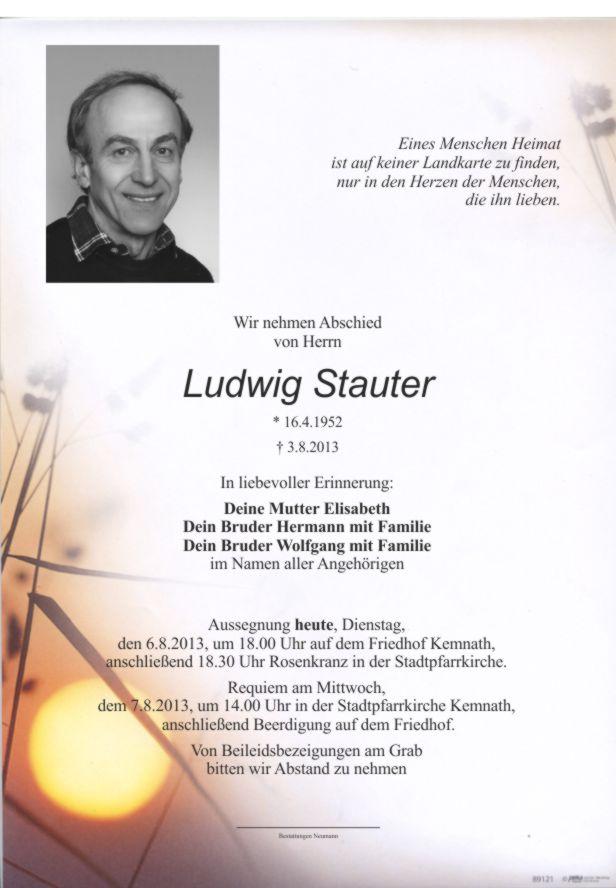 Requiem am Mittwoch, dem 7.8.2013, um 14.00 Uhr in der Stadtpfarrkirche Kemnath, anschließend Beerdigung auf dem Friedhof.