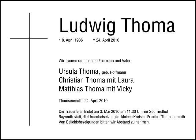 Die Trauerfeier findet am Freitag, 30.3.2010 um 11.30 Uhr im Südfriedhof Bayreuth statt.