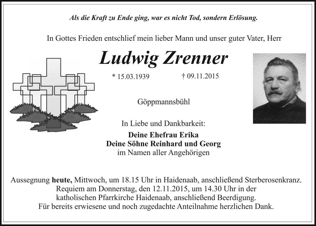 Aussegnung heute, Mittwoch, um 18.15 Uhr in Haidenaab, anschließend Sterberosenkranz.