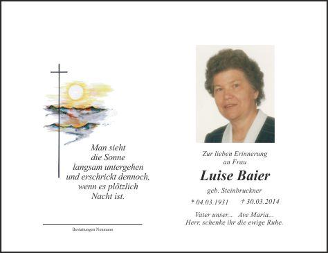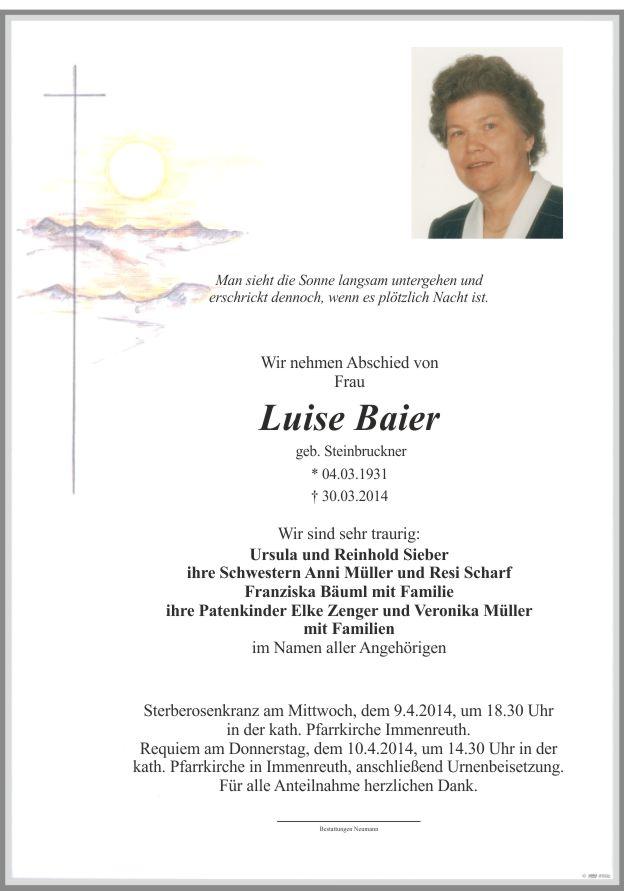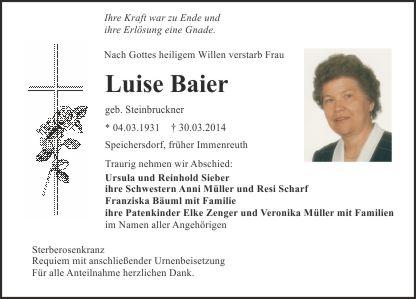 Sterberosenkranz am Mittwoch, dem 9.4.2014, um 18.30 Uhr in der kath. Pfarrkirche Immenreuth. Requiem am Donnerstag, dem 10.4.2014, um 14.30 Uhr in der kath. Pfarrkirche Immenreuth, anschließend Urnenbeisetzung im Friedhof.