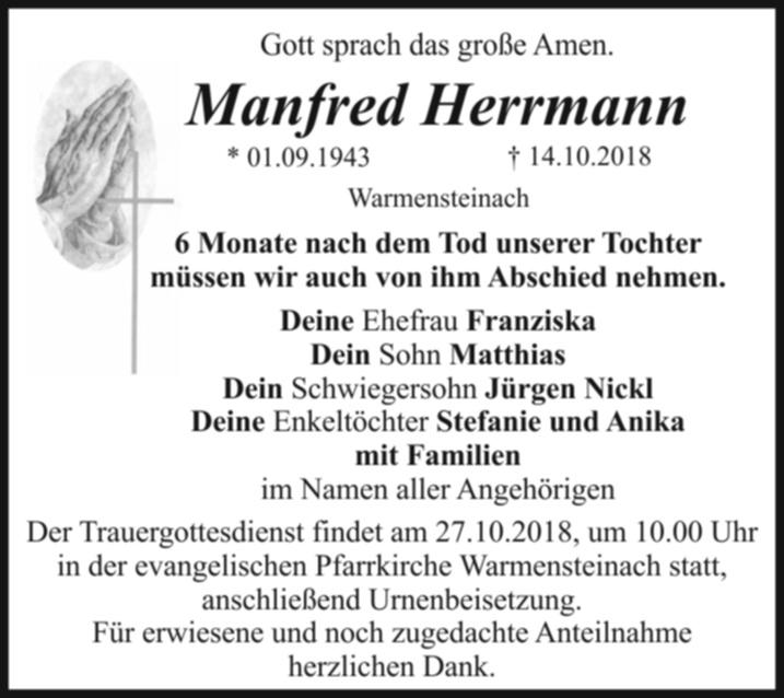 in der evangelischen Pfarrkirche Warmensteinach statt, anschließend Urnenbeisetzung.