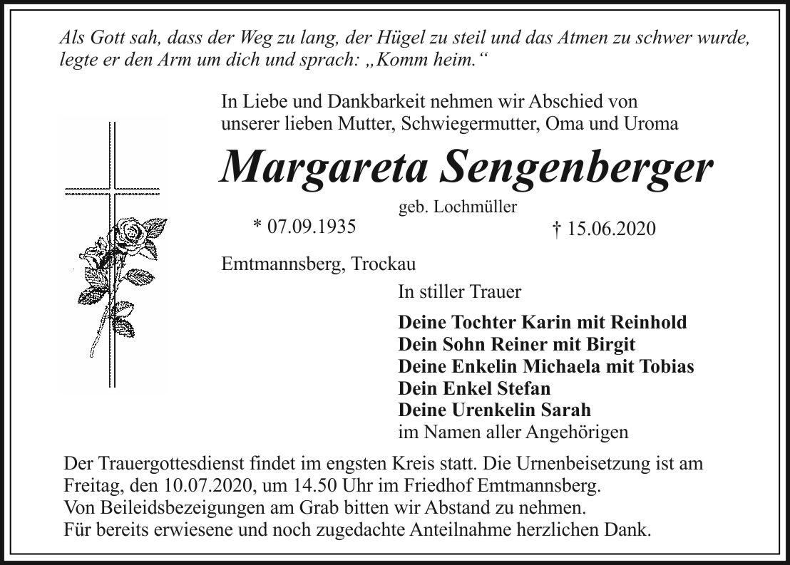 Die Trauergottesdienst findet im engsten Familienkreis statt. Die Urnenbeisetzung findet am Freitag, den 10.07.2020, um 14.50 Uhr im Friedhof Emtmannsberg statt. Für alle Anteilnahme bedanken wir uns herzlich.